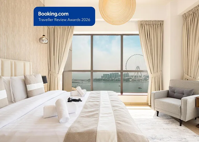 Dubai Eye & Sea View, 1-Min Walk To Jbr Beach, Luxurious Beach Retreat!